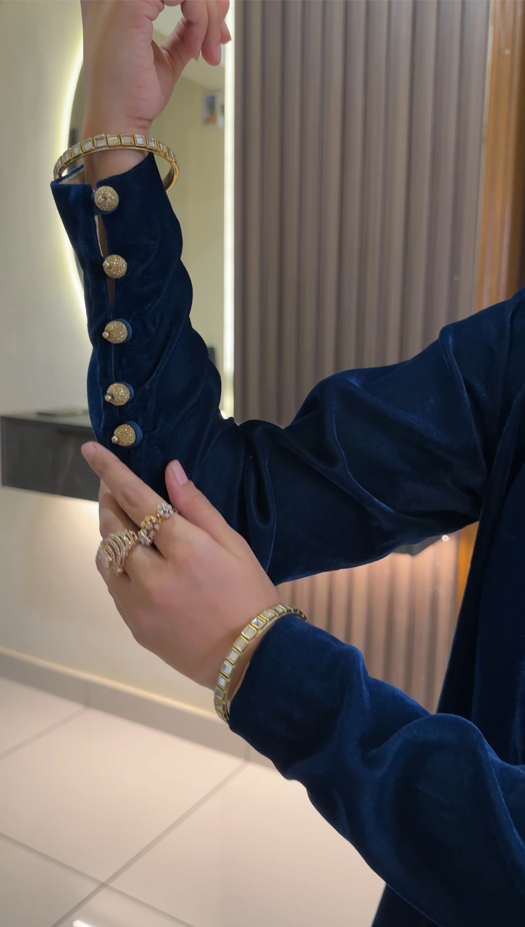 This shirt features a straight, floor-length silhouette with a simple and graceful design. The neckline is round with a short button placket down the front, adding a touch of traditional detailing. The sleeves are full-length and loose-fitting, complementing the relaxed yet refined style of the shirt.